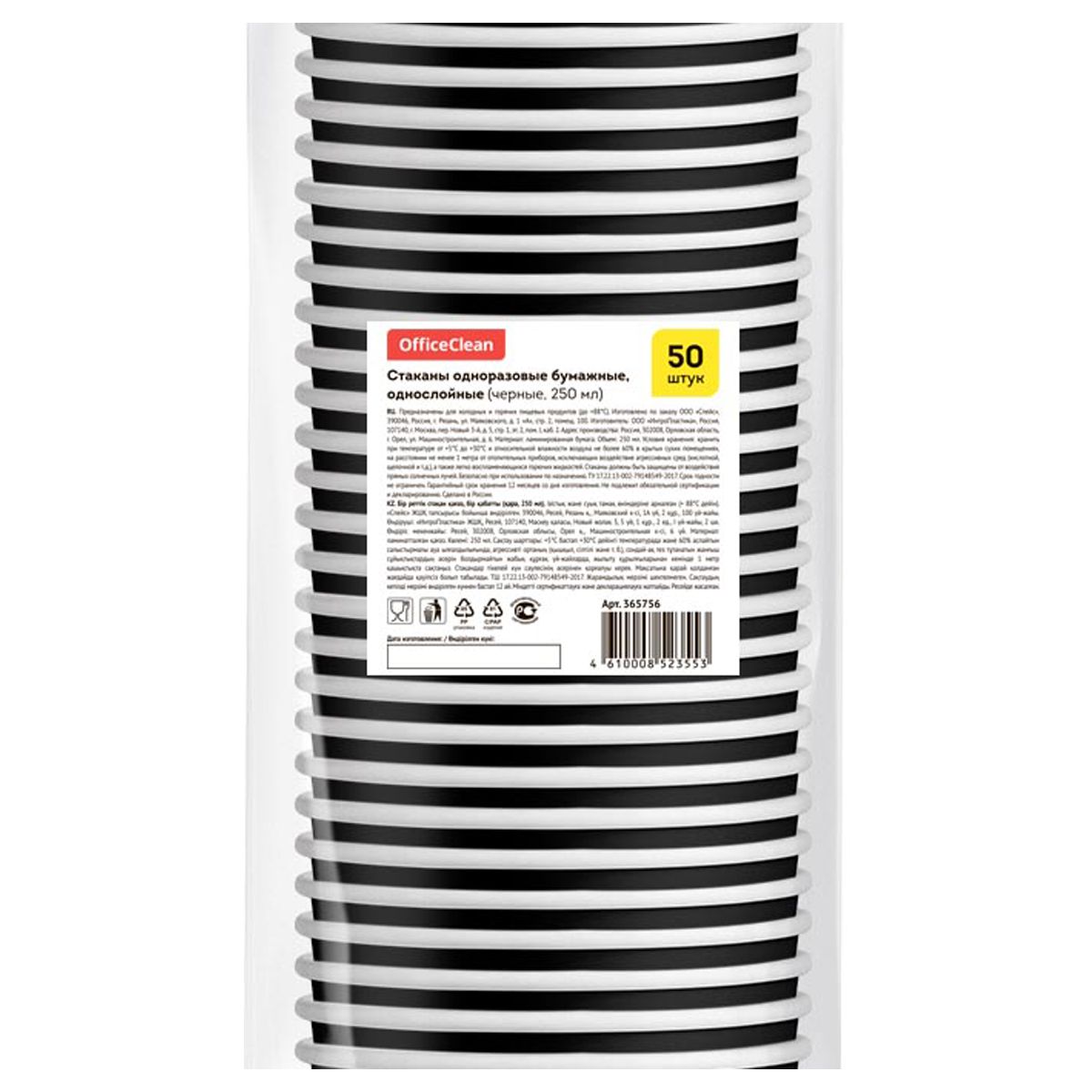 Стаканы одноразовые OfficeClean 250мл, набор 50шт., бумажные однослойные, черные, хол/гор