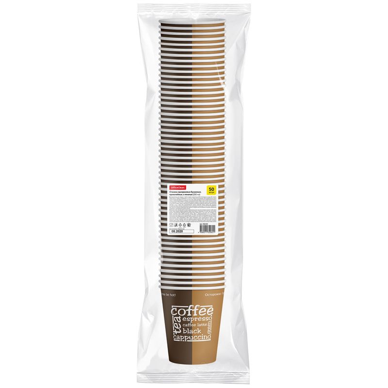 Стаканы одноразовые OfficeClean 250мл, набор 50шт., бумажные однослойные, с печатью, хол/гор