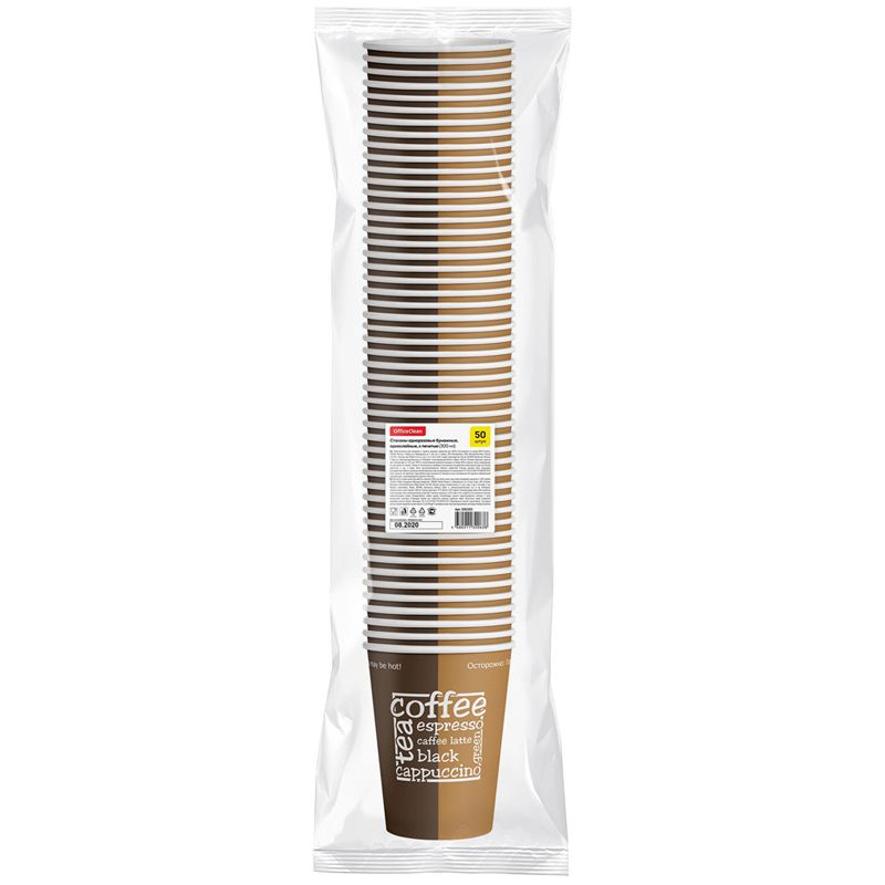 Стаканы одноразовые OfficeClean 300мл, набор 50шт., бумажные однослойные, с печатью, хол/гор