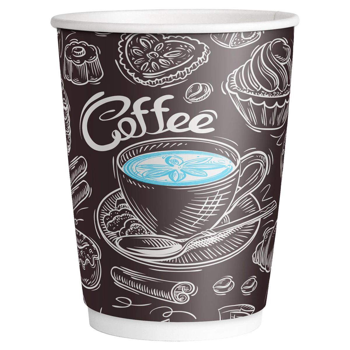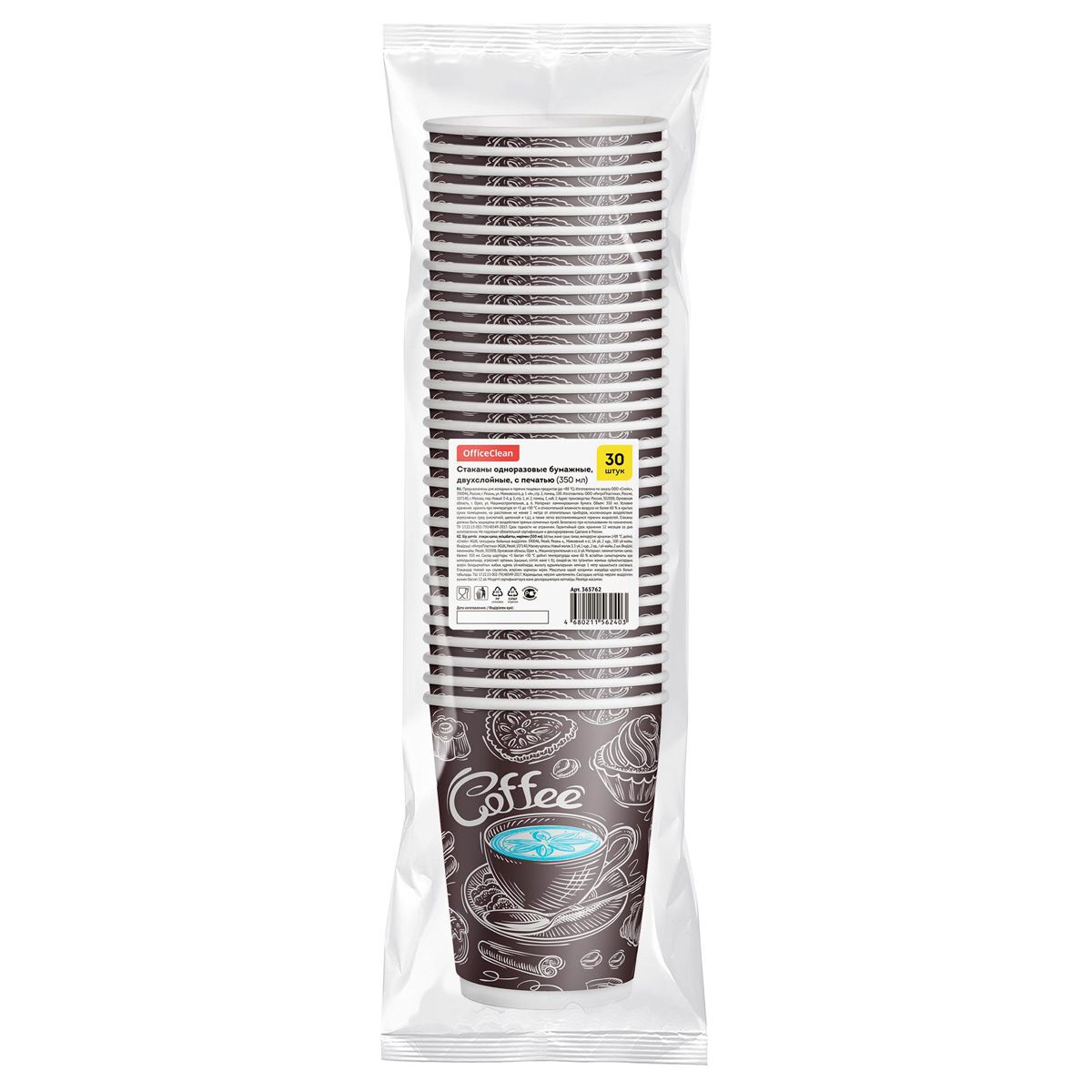 Стаканы одноразовые OfficeClean 350мл, набор 30шт., бумажные двухслойные, с печатью, Coffee, хол/гор