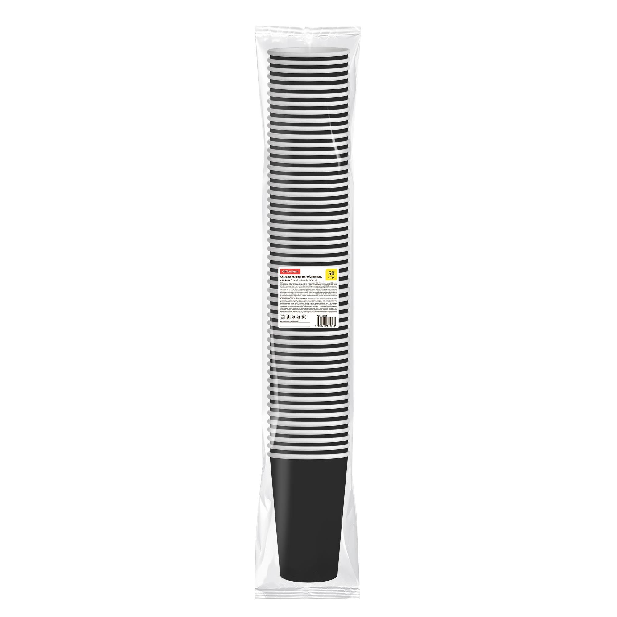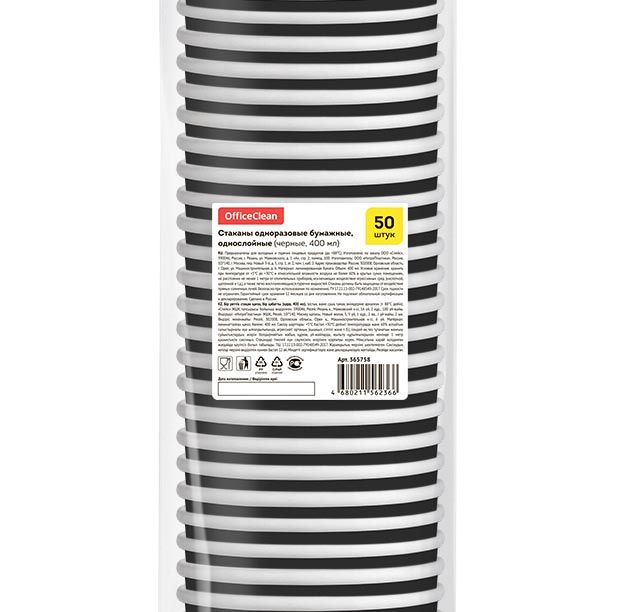 Стаканы одноразовые OfficeClean 400мл, набор 50шт., бумажные однослойные, черные, хол/гор