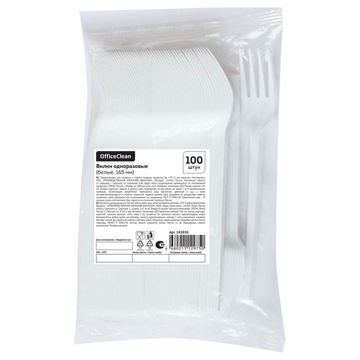 Вилки одноразовые OfficeClean, набор 100шт., эконом, ПС, белые, 16,5см