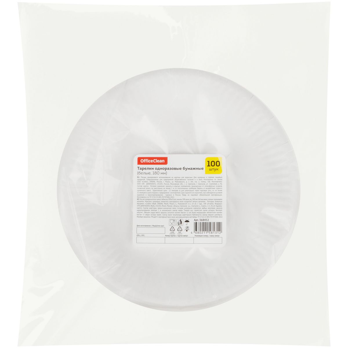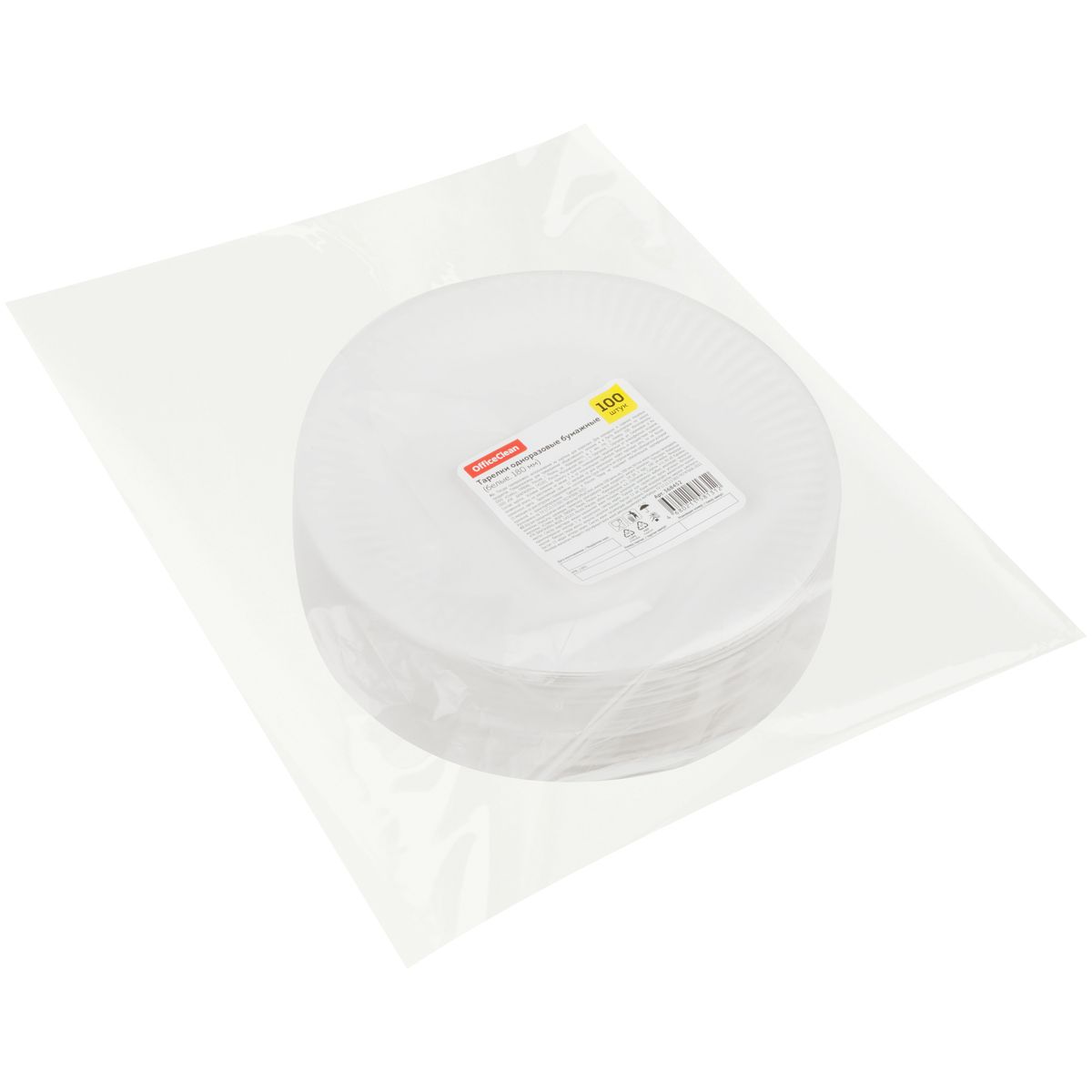 Тарелки одноразовые бумажные OfficeClean, набор 100шт., белые мелованные, 180мм