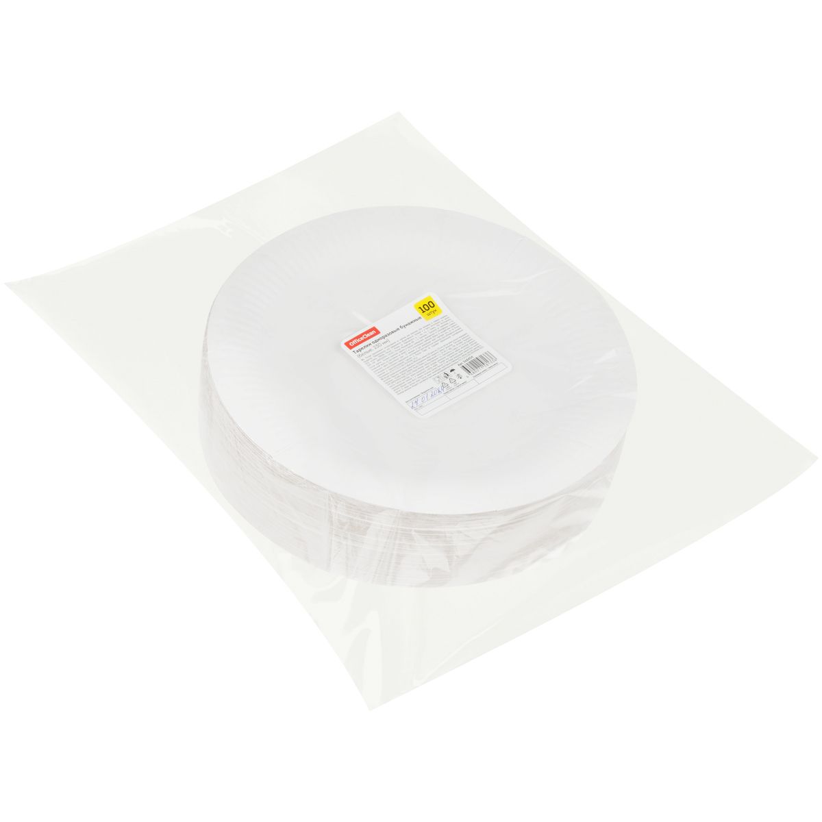 Тарелки одноразовые бумажные OfficeClean, набор 100шт., белые мелованные, 230мм