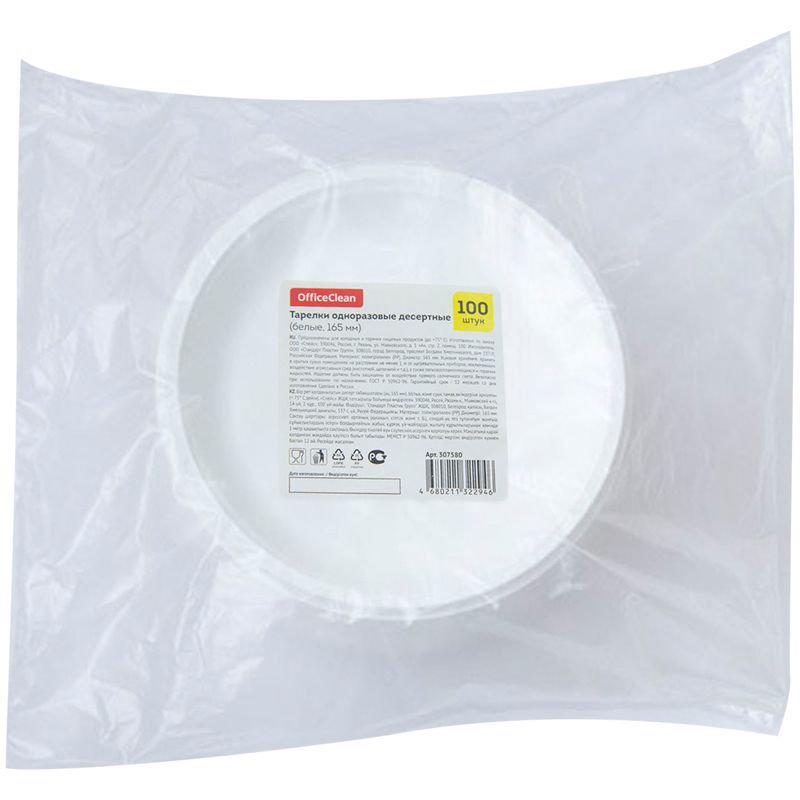 Тарелки одноразовые десертные OfficeClean, набор 100шт., ПП, белые, 16,5см