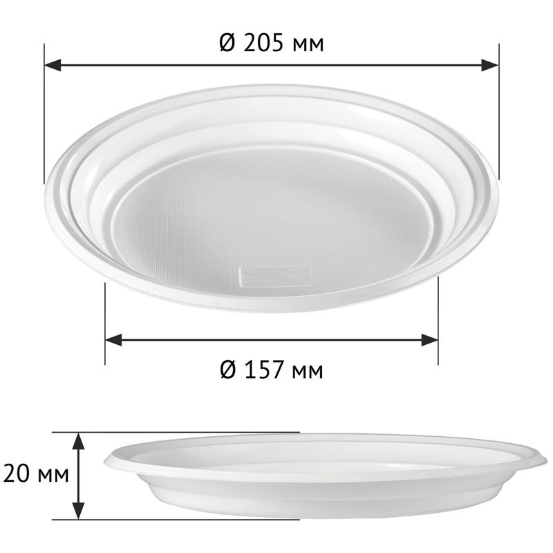 Тарелки одноразовые OfficeClean, набор 100шт., эконом, ПС, белые, бессекционные, 20,5см