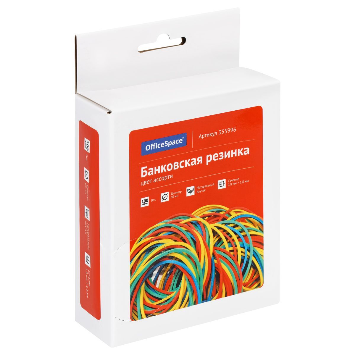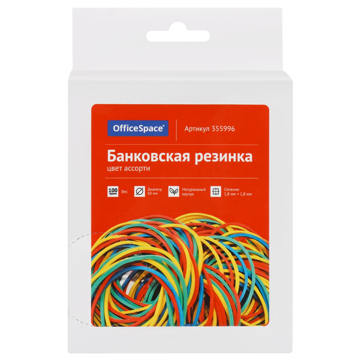 Банковская резинка 100г OfficeSpace, диаметр 60мм, ассорти, коробка с европодвесом