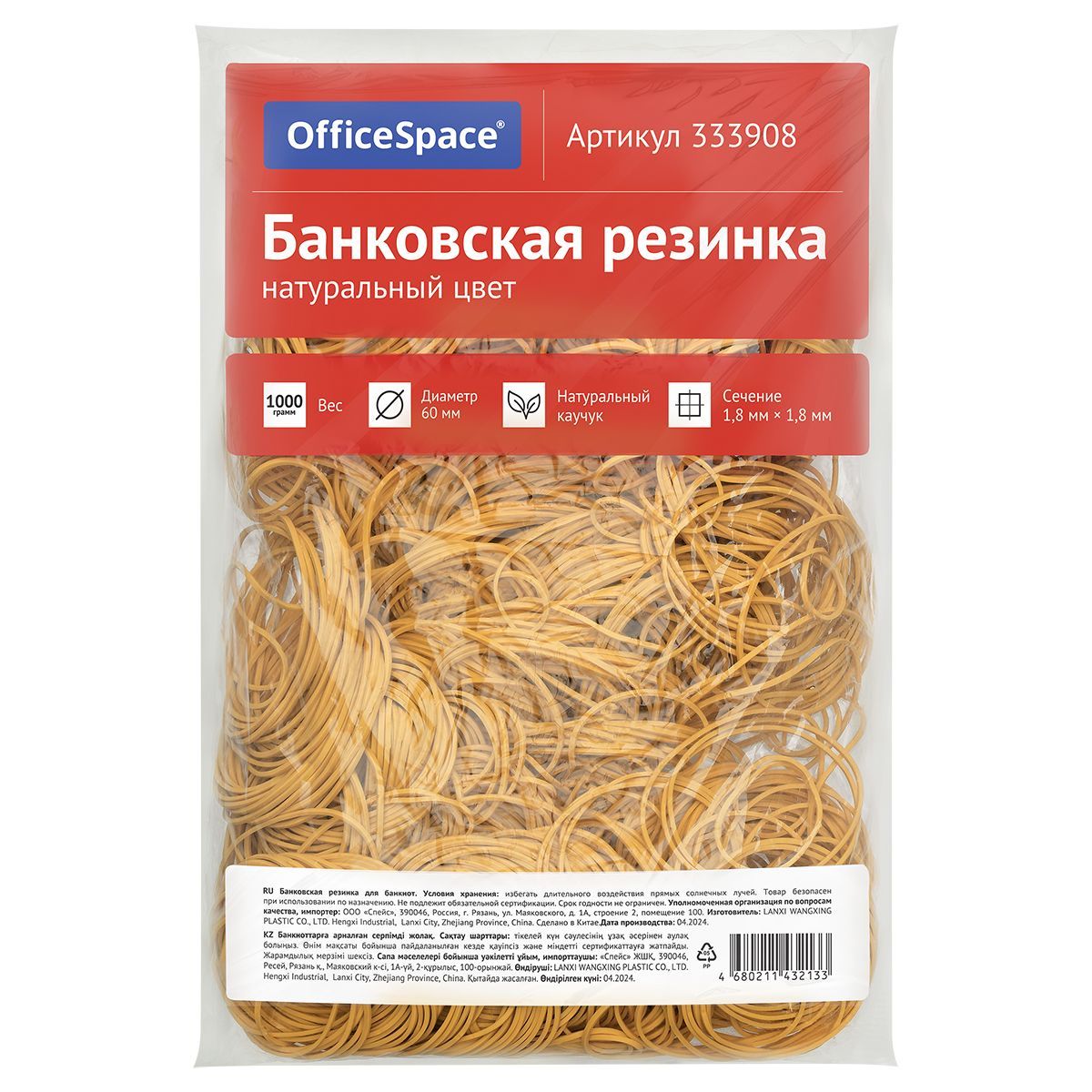 Банковская резинка 1кг OfficeSpace, диаметр 60мм, натуральный цвет