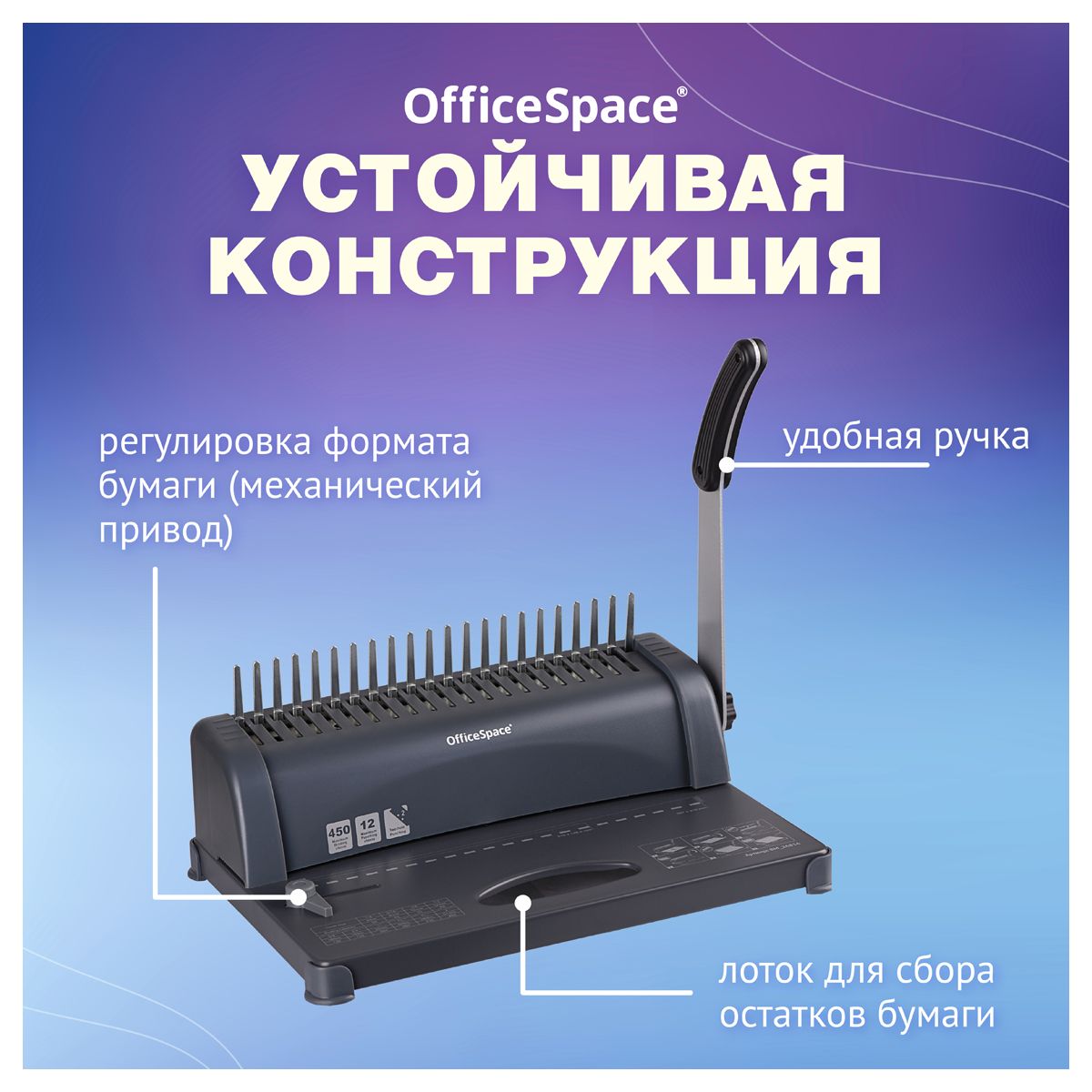 Брошюровщик OfficeSpace BM124 "Perfect bind" для пластиковых пружин, пробивает 12л., сшивает 450л.