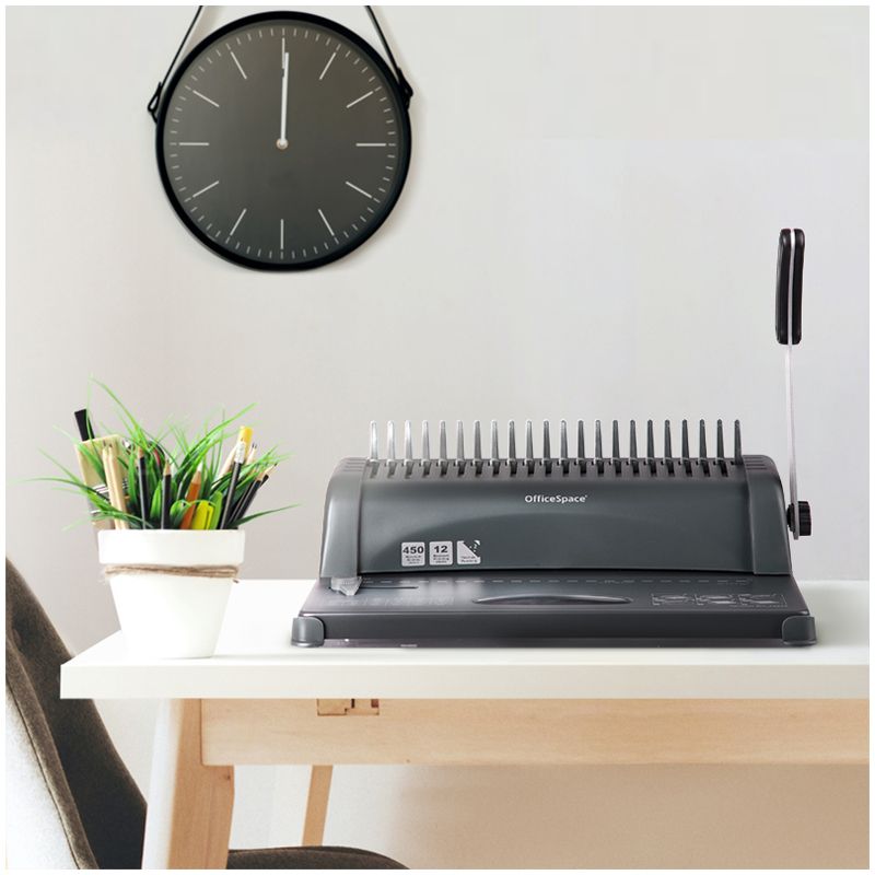 УЦЕНКА-Брошюровщик OfficeSpace BM124 "Perfect bind" для пластиковых пружин, пробивает 12л., сшивает 450л. (осн 282075)