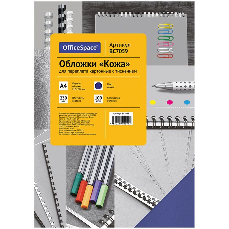 Обложка А4 OfficeSpace "Кожа" 230г/кв.м, синий картон, 100л.
