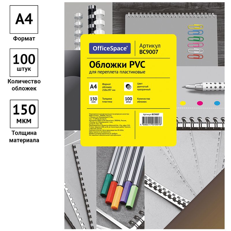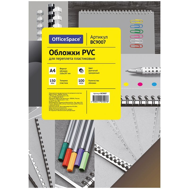 Обложка А4 OfficeSpace "PVC" 150мкм, прозрачный дымчатый пластик, 100л.