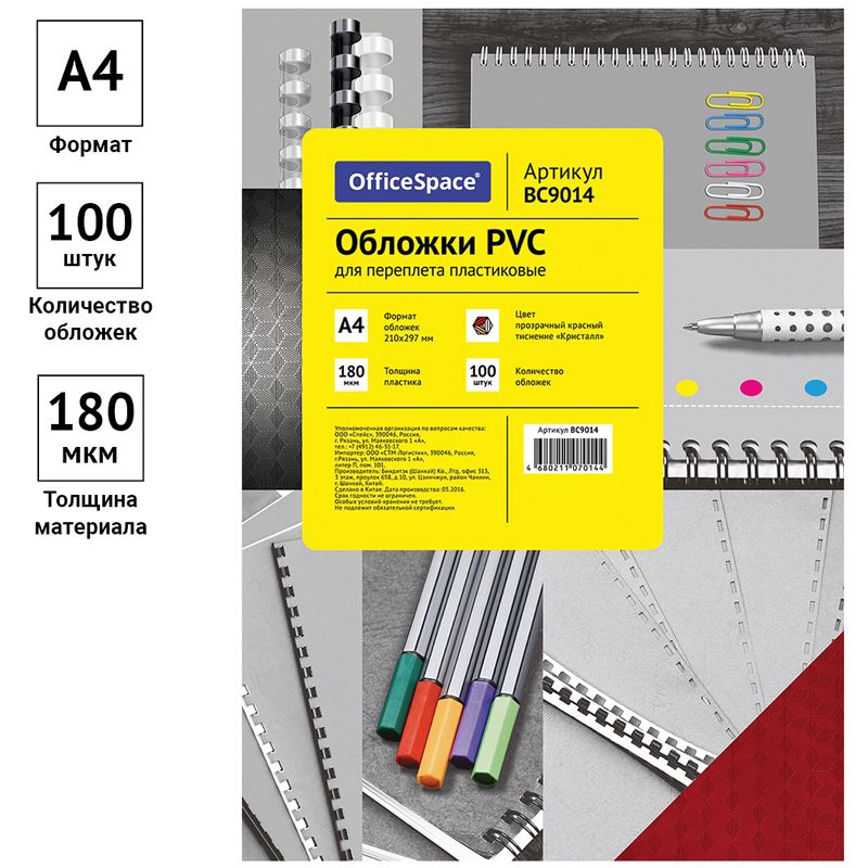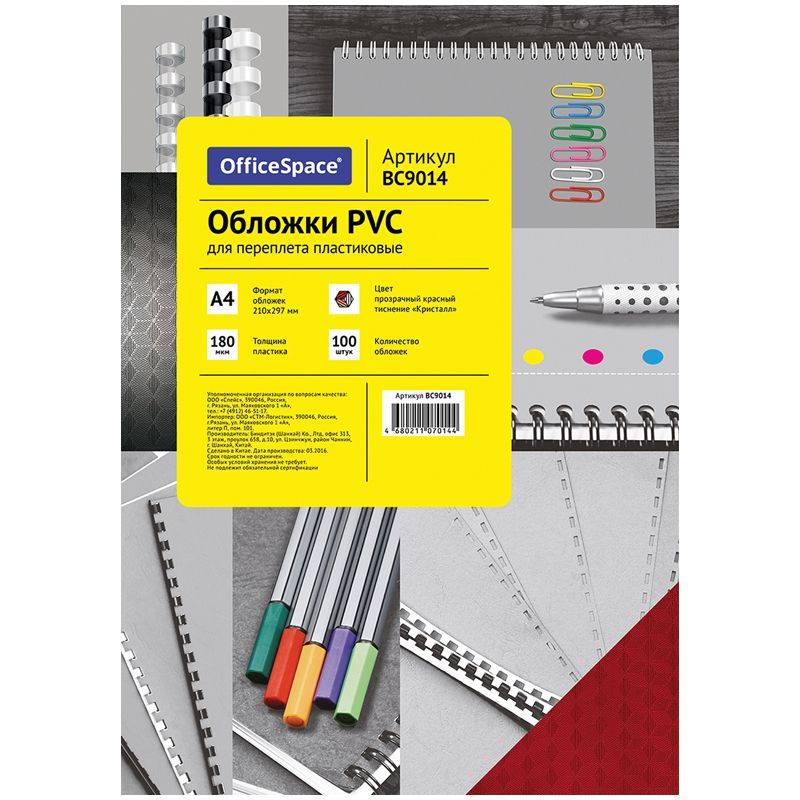 Обложка А4 OfficeSpace "PVC" 180мкм, "Кристалл" прозрачный красный пластик, 100л.