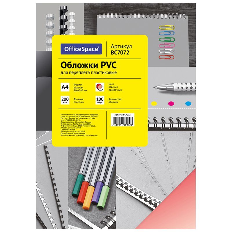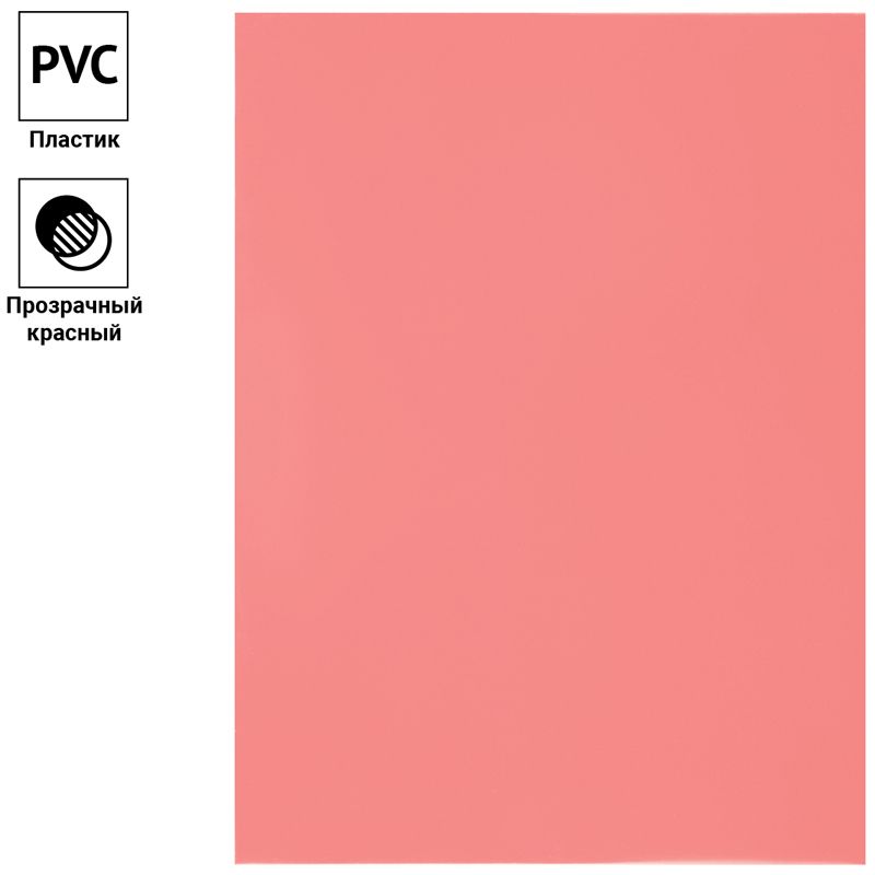 Обложка А4 OfficeSpace "PVC" 200мкм, прозрачный красный пластик, 100л.