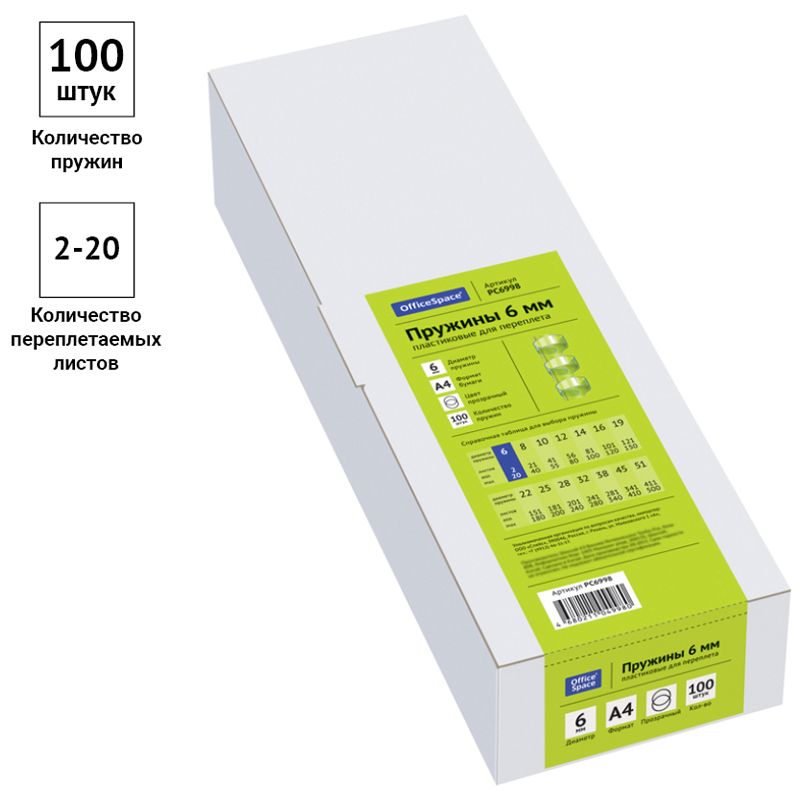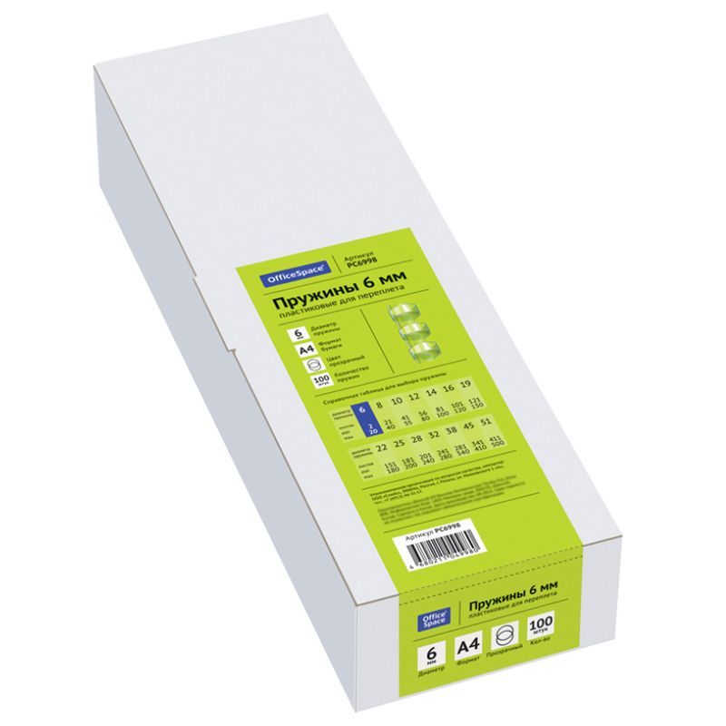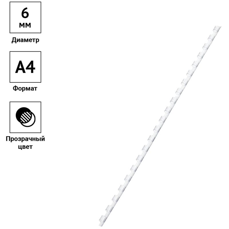 Пружины пластик D=06мм OfficeSpace, прозрачн. бесцветный, 100шт.