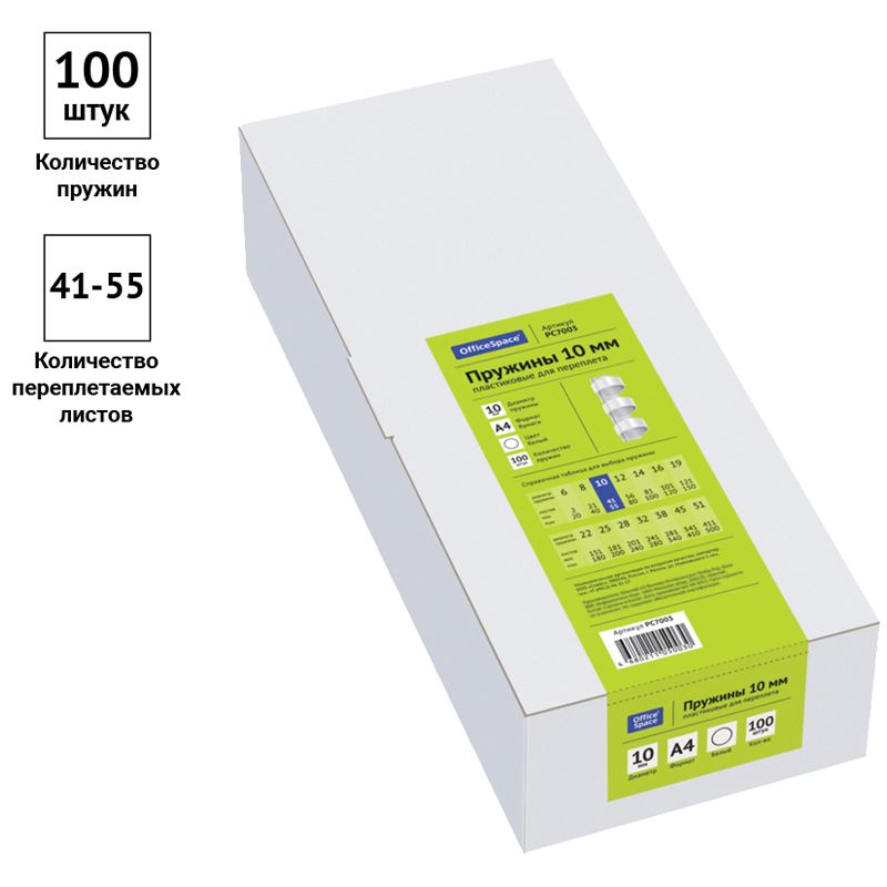 Пружины пластик D=10мм OfficeSpace, белый, 100шт.