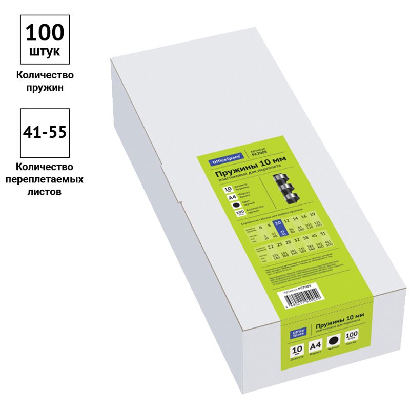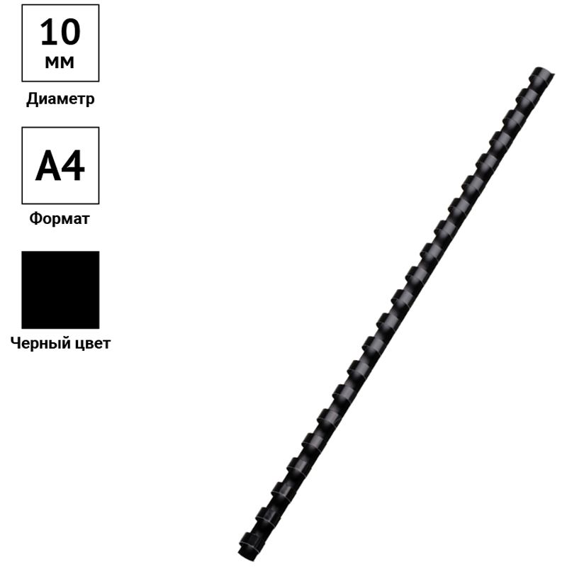 Пружины пластик D=10мм OfficeSpace, черный, 100шт.