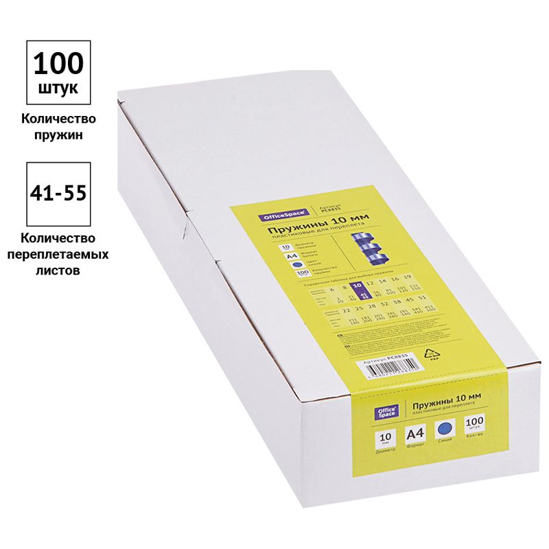 Пружины пластик D=10мм OfficeSpace, синий, 100шт.