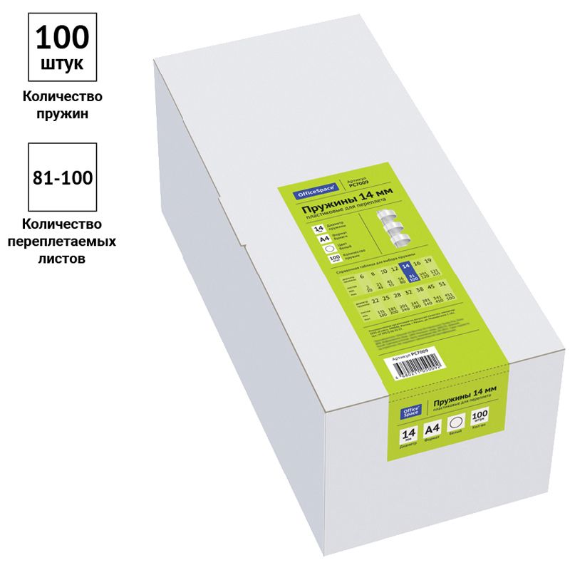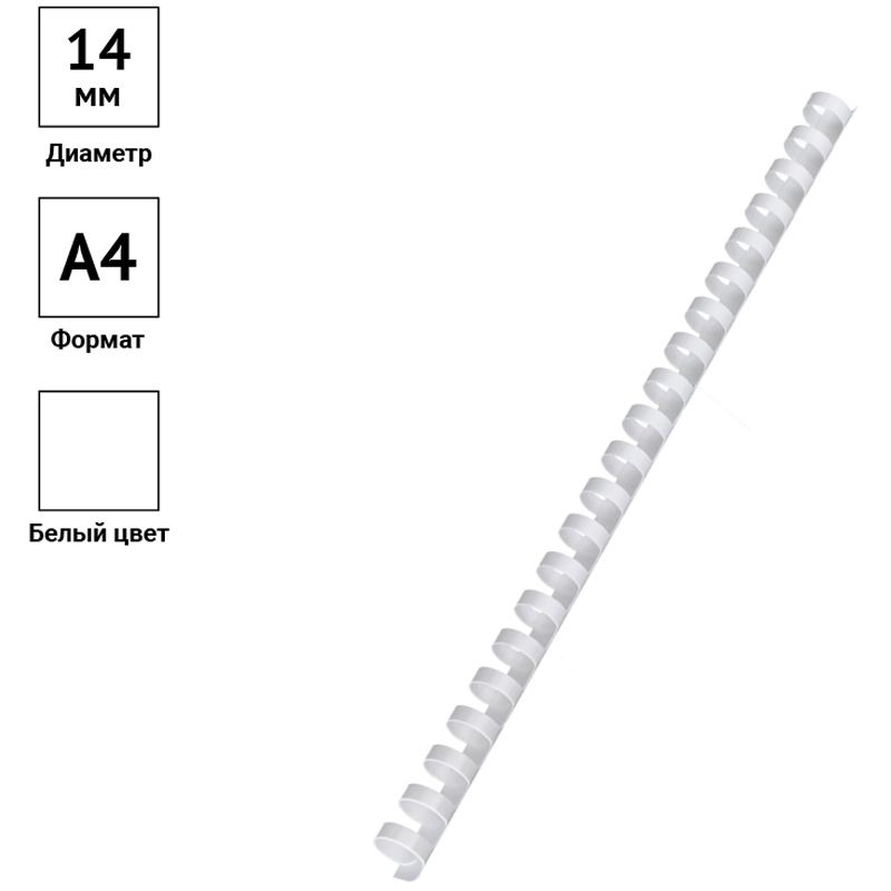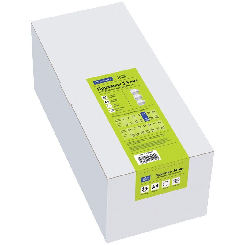 Пружины пластик D=14мм OfficeSpace, белый, 100шт.