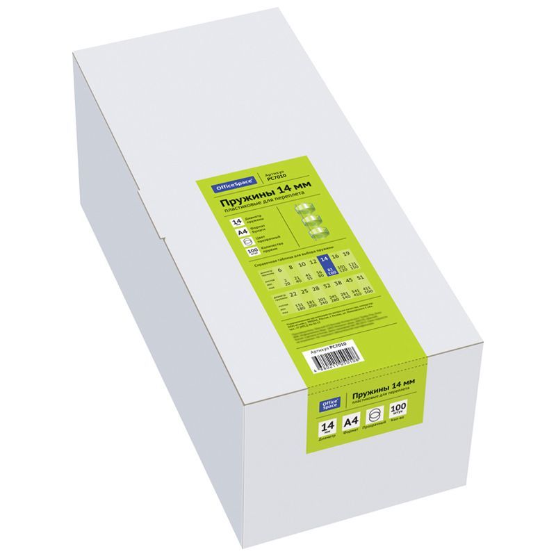 Пружины пластик D=14мм OfficeSpace, прозрачн. бесцветный, 100шт.