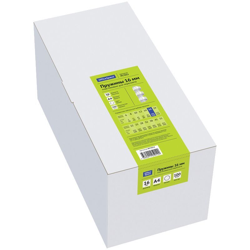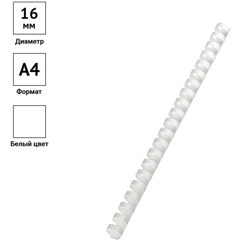 Пружины пластик D=16мм OfficeSpace, белый, 100шт.