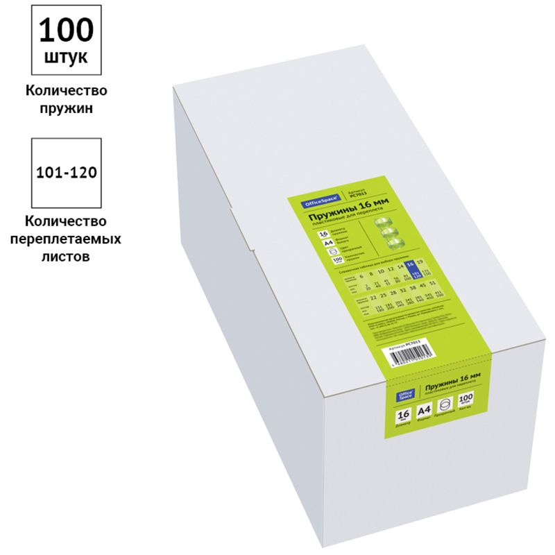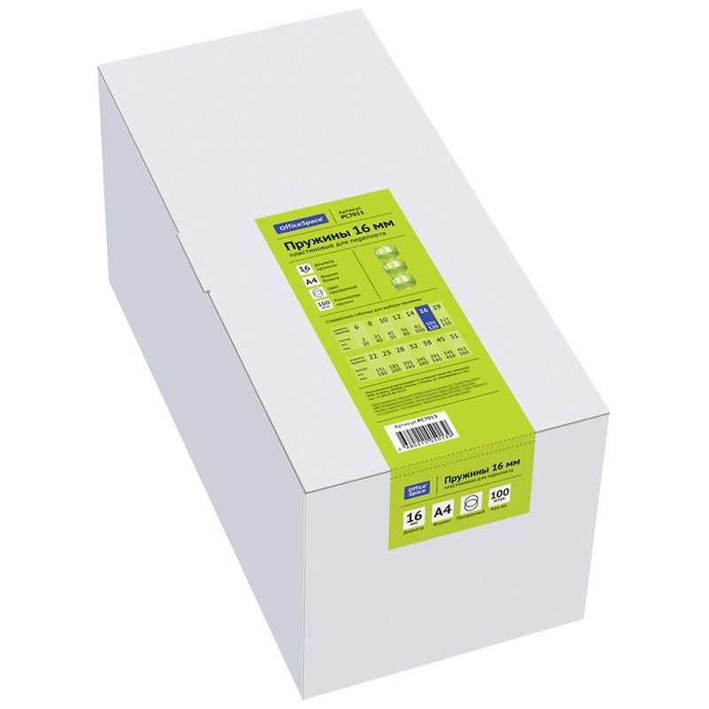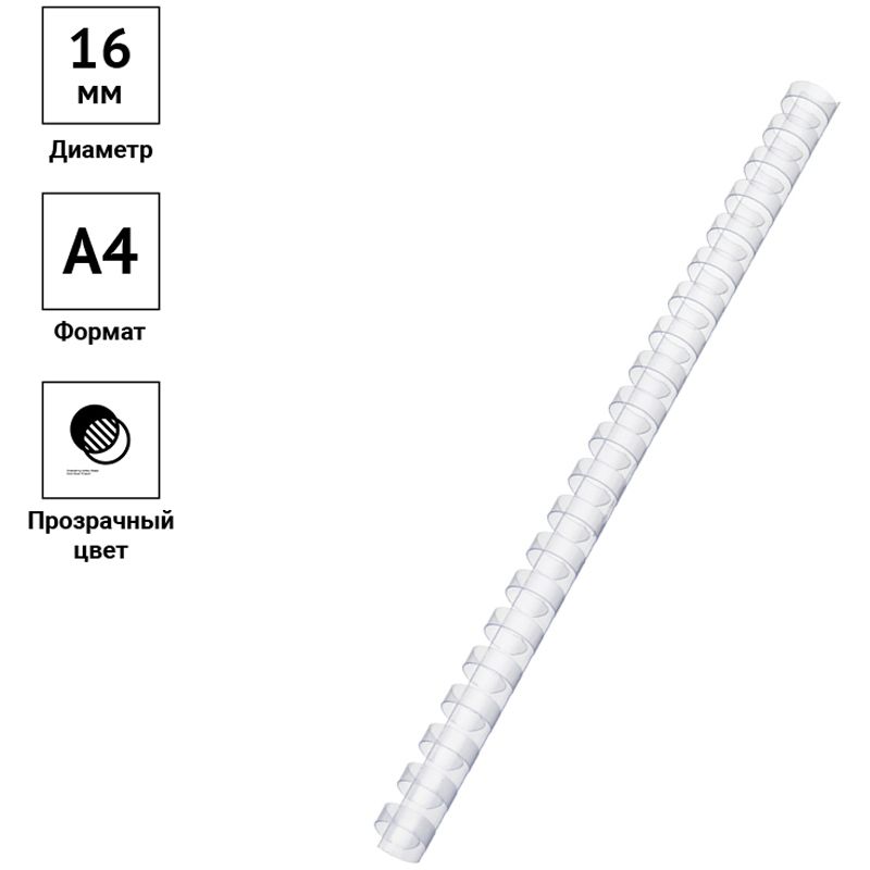Пружины пластик D=16мм OfficeSpace, прозрачн. бесцветный, 100шт.