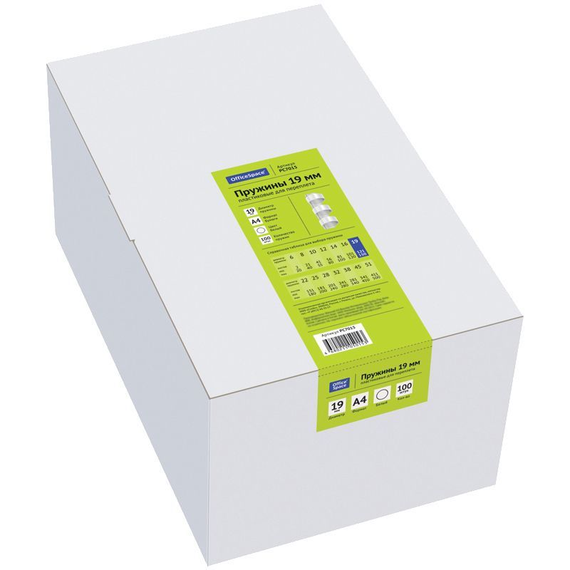 Пружины пластик D=19мм OfficeSpace, белый, 100шт.