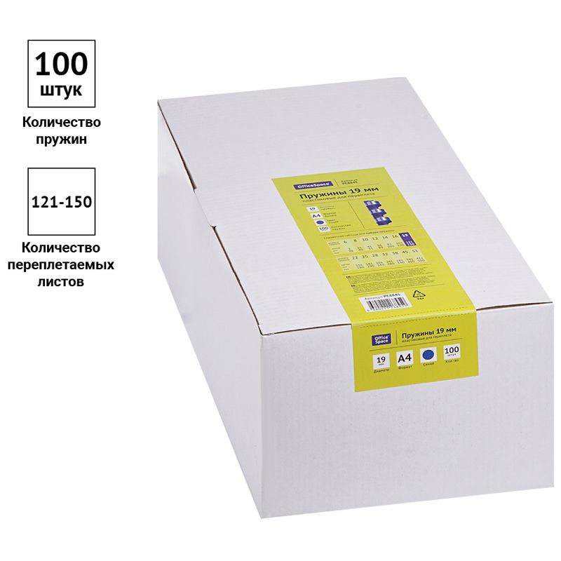 Пружины пластик D=19мм OfficeSpace, синий, 100шт.