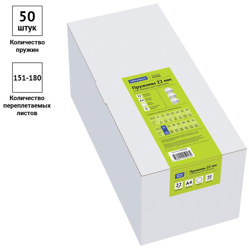 Пружины пластик D=22мм OfficeSpace, белый, 50шт.