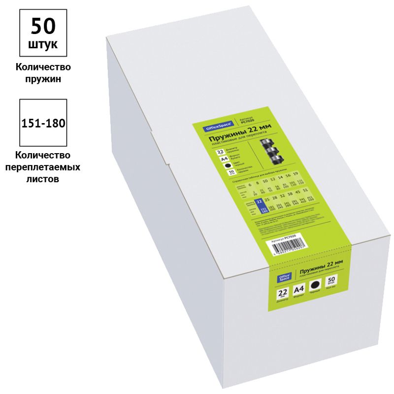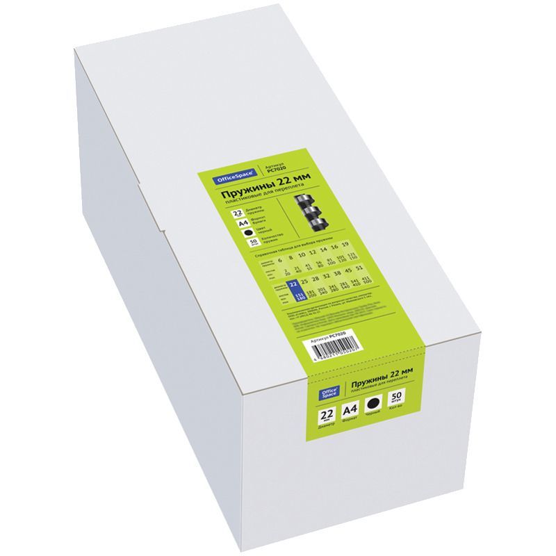 Пружины пластик D=22мм OfficeSpace, черный, 50шт.