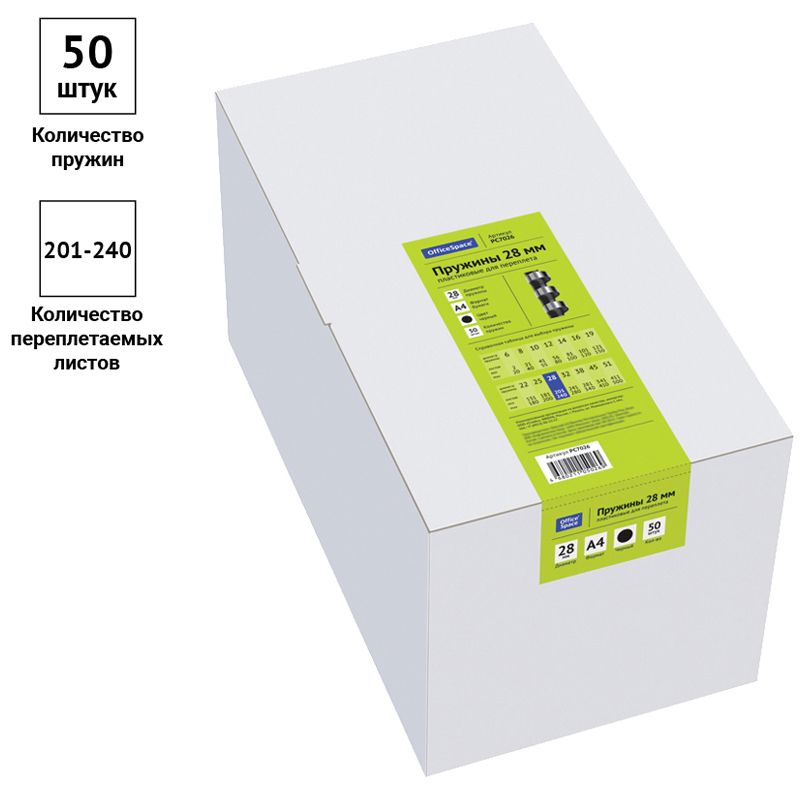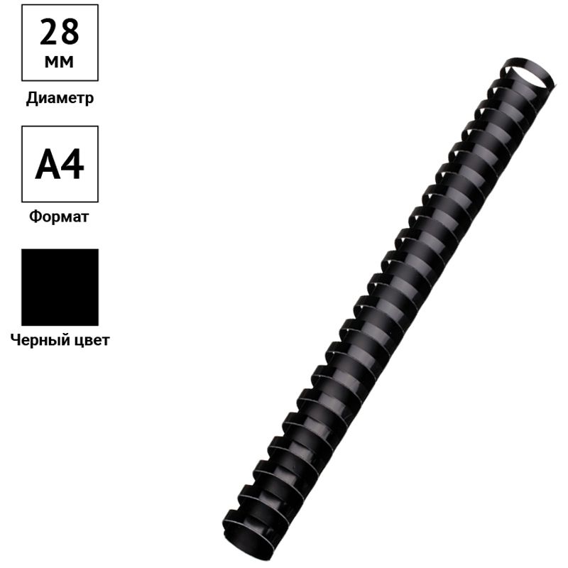 Пружины пластик D=28мм OfficeSpace, черный, 50шт.