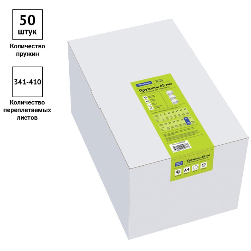 Пружины пластик D=45мм OfficeSpace, белый, 50шт.