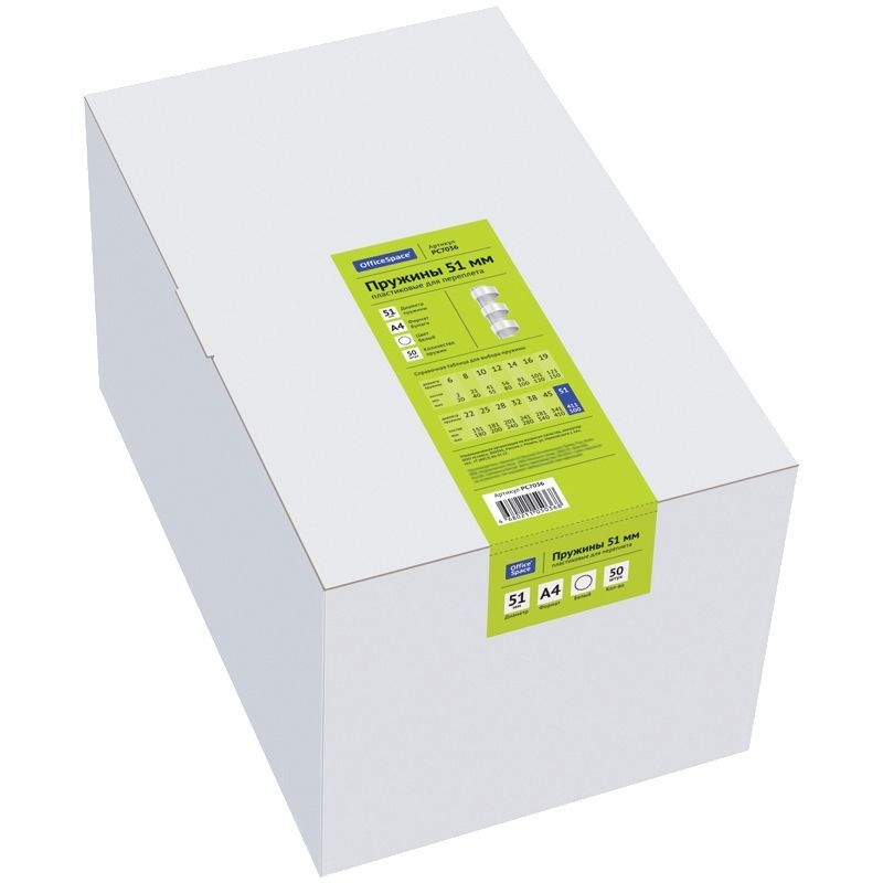Пружины пластик D=51мм OfficeSpace, белый, 50шт.