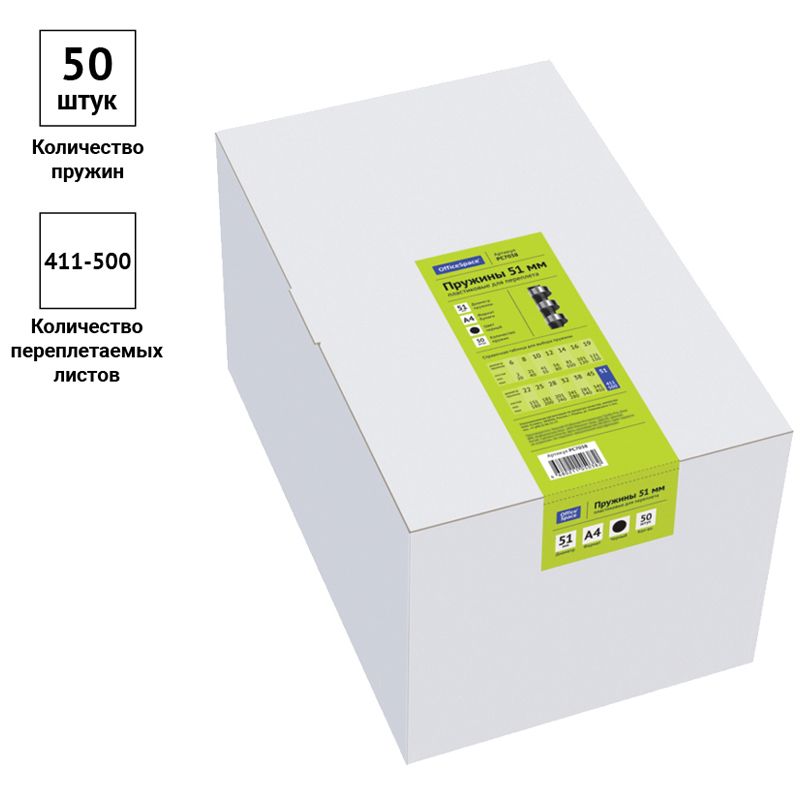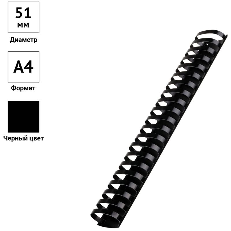 Пружины пластик D=51мм OfficeSpace, черный, 50шт.