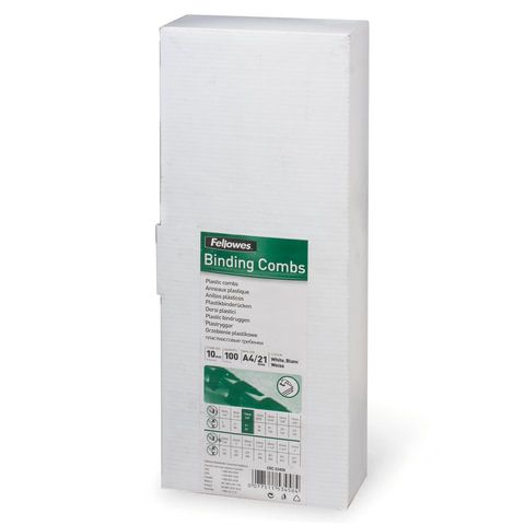 Пружины пластиковые для переплета, КОМПЛЕКТ 100 шт., 10 мм (для сшивания 41-55 л.), белые, FELLOWES, FS-53458