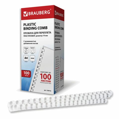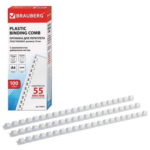 Пружины пластиковые для переплета, КОМПЛЕКТ 100 шт., 12 мм (для сшивания 56-80 л.), белые, FELLOWES, FS-53462