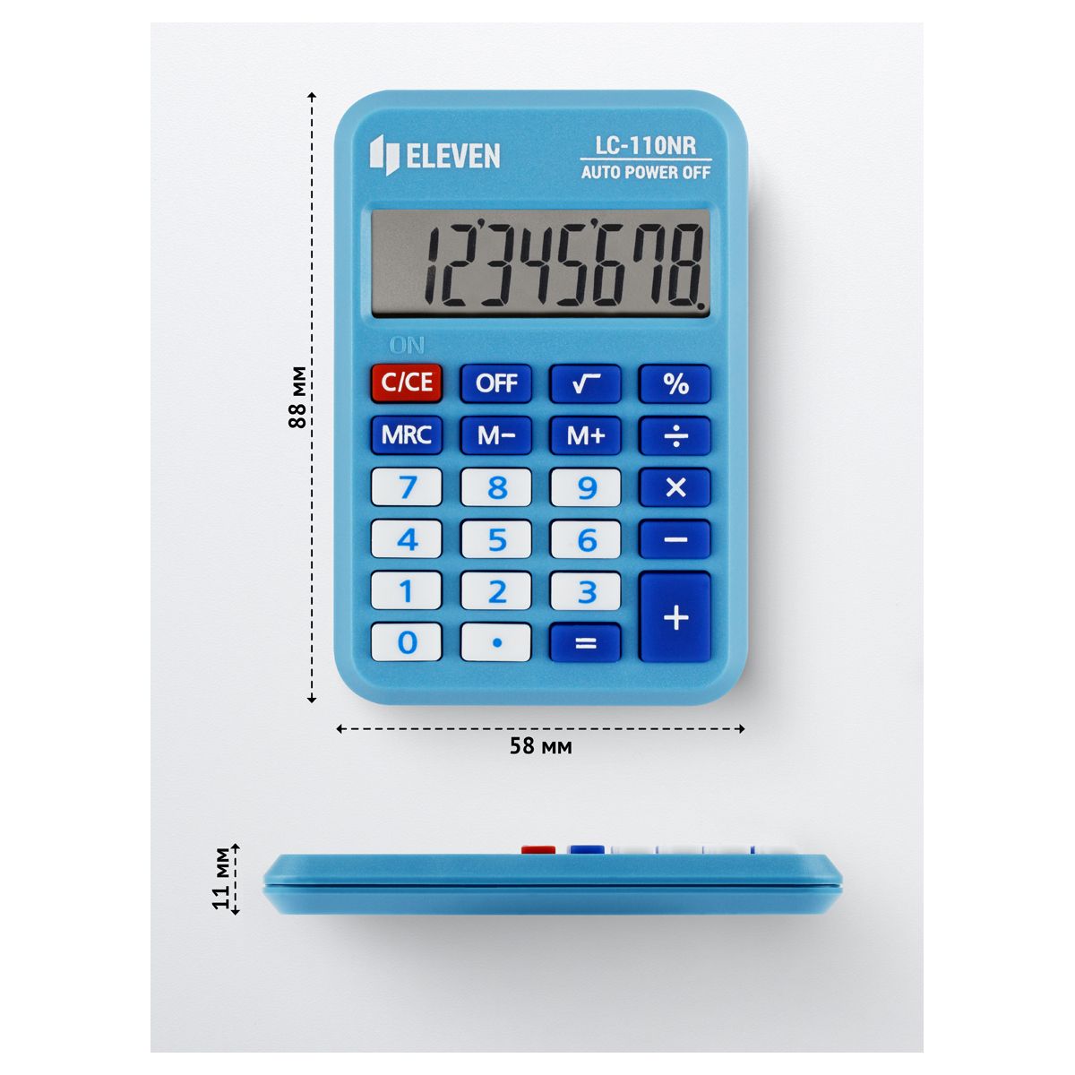 Калькулятор карманный Eleven LC-110NR-BL, 8 разрядов, питание от батарейки, 58*88*11мм, голубой