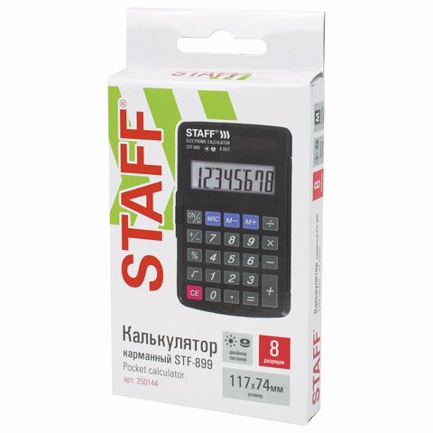 Калькулятор карманный STAFF STF-899 (117х74 мм), 8 разрядов, двойное питание, 250144