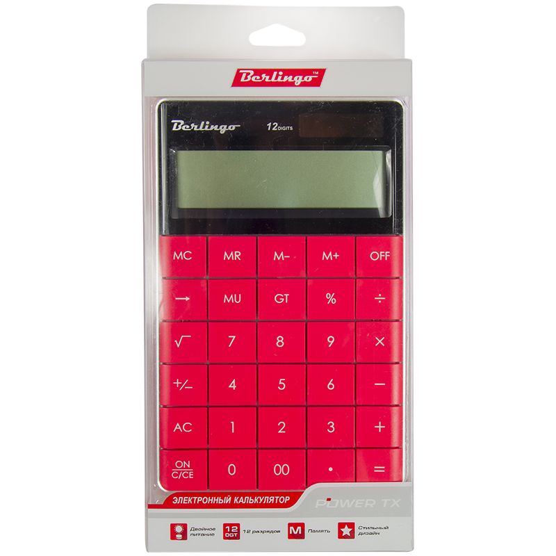 Калькулятор настольный Berlingo "Power TX", 12 разр., двойное питание, 165*105*13мм, темно-розовый