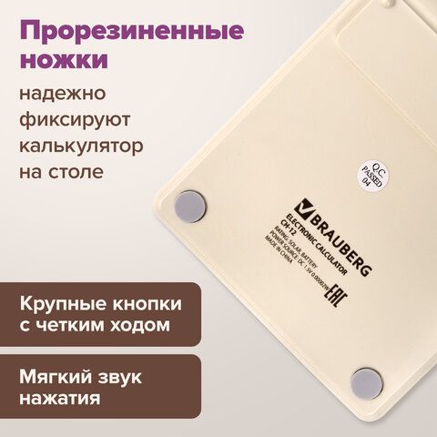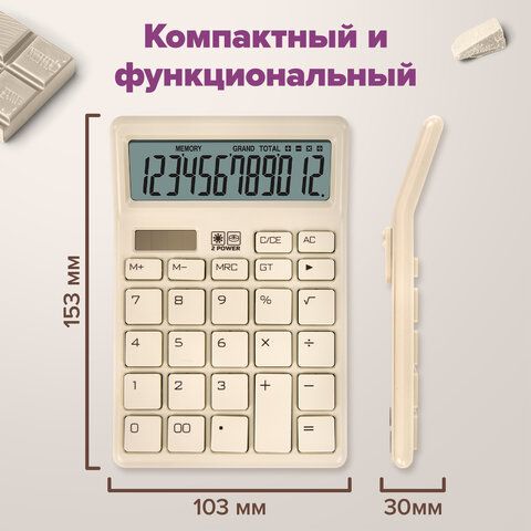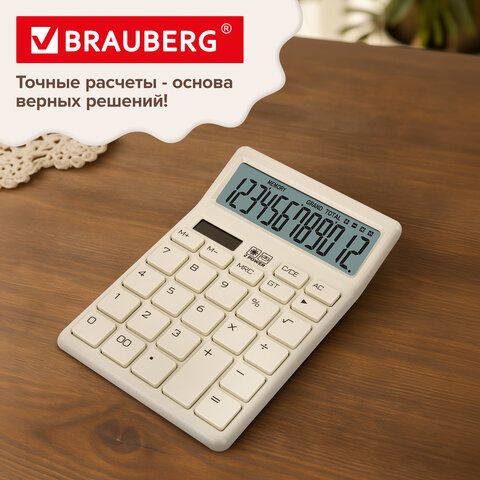 Калькулятор настольный BRAUBERG CH-12-BG (153х103 мм), 12 разрядов, двойное питание, бежевый, 272960