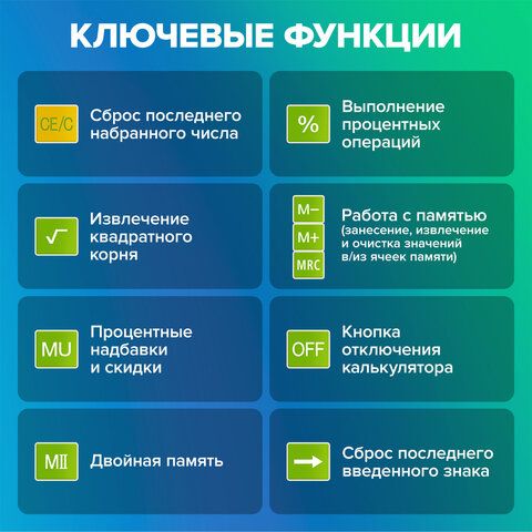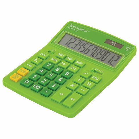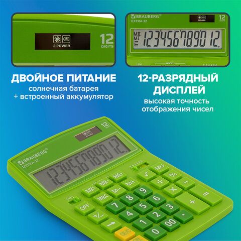 Калькулятор настольный BRAUBERG EXTRA-12-DG (206x155 мм), 12 разрядов, двойное питание, ЗЕЛЕНЫЙ, 250483