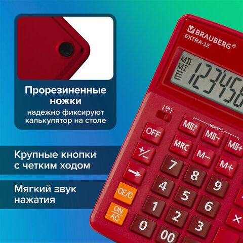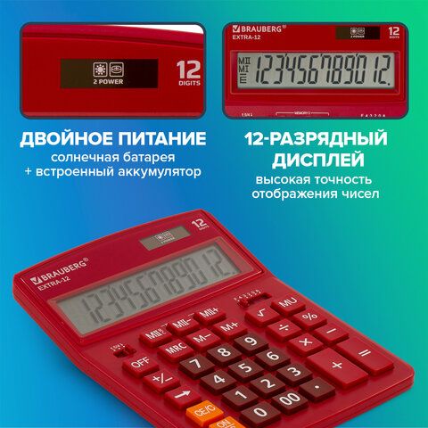 Калькулятор настольный BRAUBERG EXTRA-12-WR (206x155 мм), 12 разрядов, двойное питание, БОРДОВЫЙ, 250484