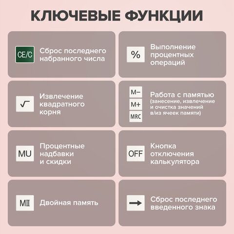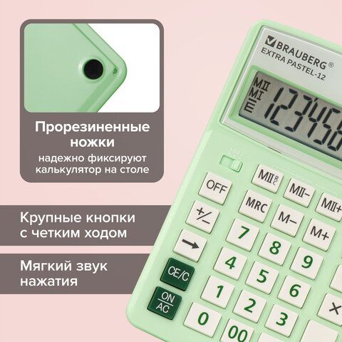 Калькулятор настольный BRAUBERG EXTRA PASTEL-12-LG (206x155 мм), 12 разрядов, двойное питание, МЯТНЫЙ, 250488