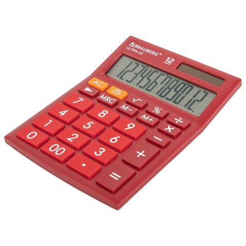 Калькулятор настольный BRAUBERG ULTRA-12-WR (192x143 мм), 12 разрядов, двойное питание, БОРДОВЫЙ, 250494