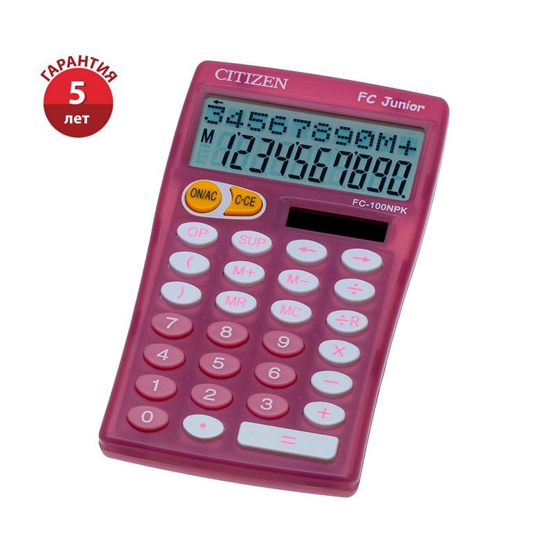 Калькулятор настольный Citizen FC-100NPK, 10 разр., двойное питание, 76*128*17мм, розовый