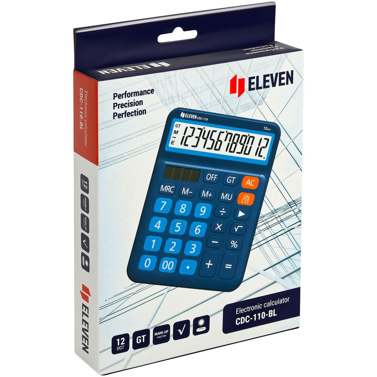 Калькулятор настольный Eleven CDC-110-BL, 12 разрядов, двойное питание, 125*160*28мм, синий