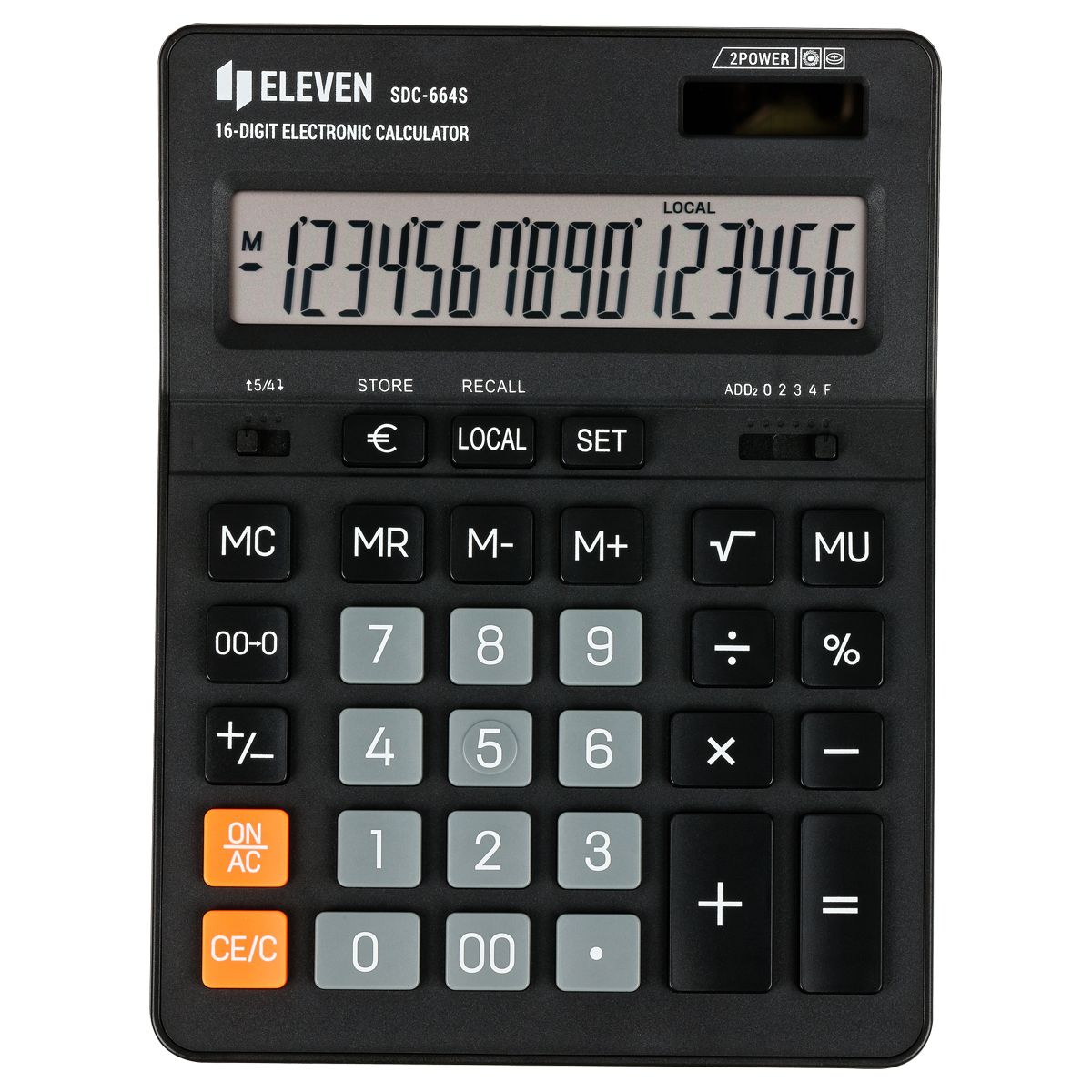 Калькулятор настольный Eleven SDC-664S, 16 разрядов, двойное питание, 155*205*36мм, черный