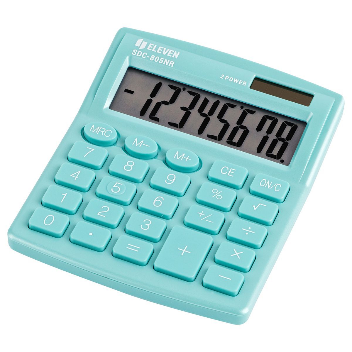 Калькулятор настольный Eleven SDC-805NR-GN, 8 разр., двойное питание, 127*105*21мм, бирюзовый