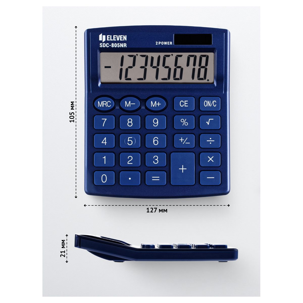 Калькулятор настольный Eleven SDC-805NR-NV, 8 разр., двойное питание, 127*105*21мм, темно-синий