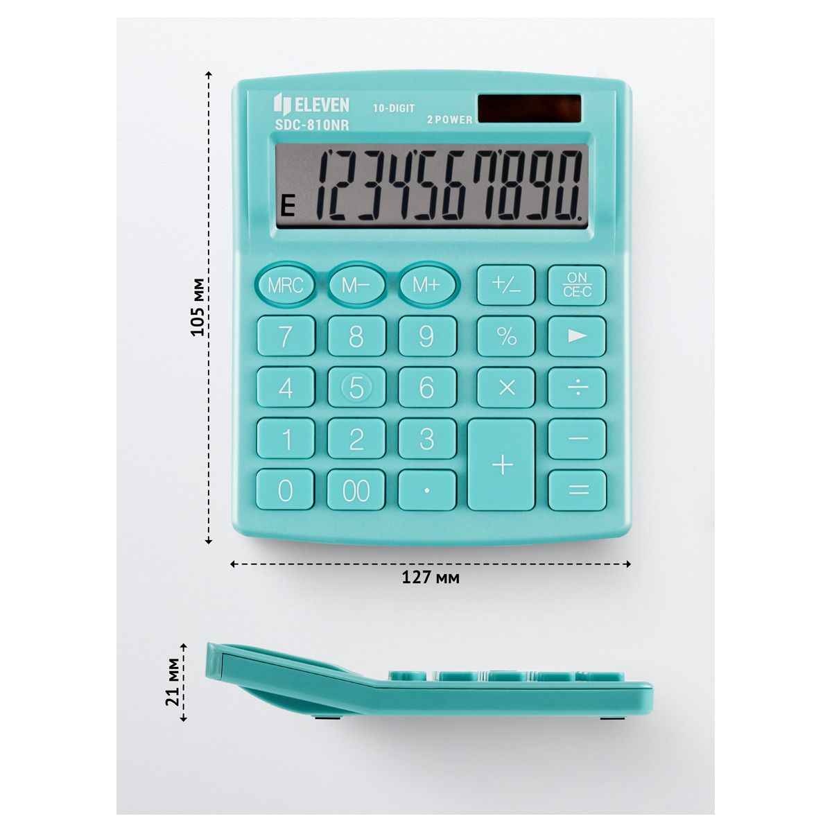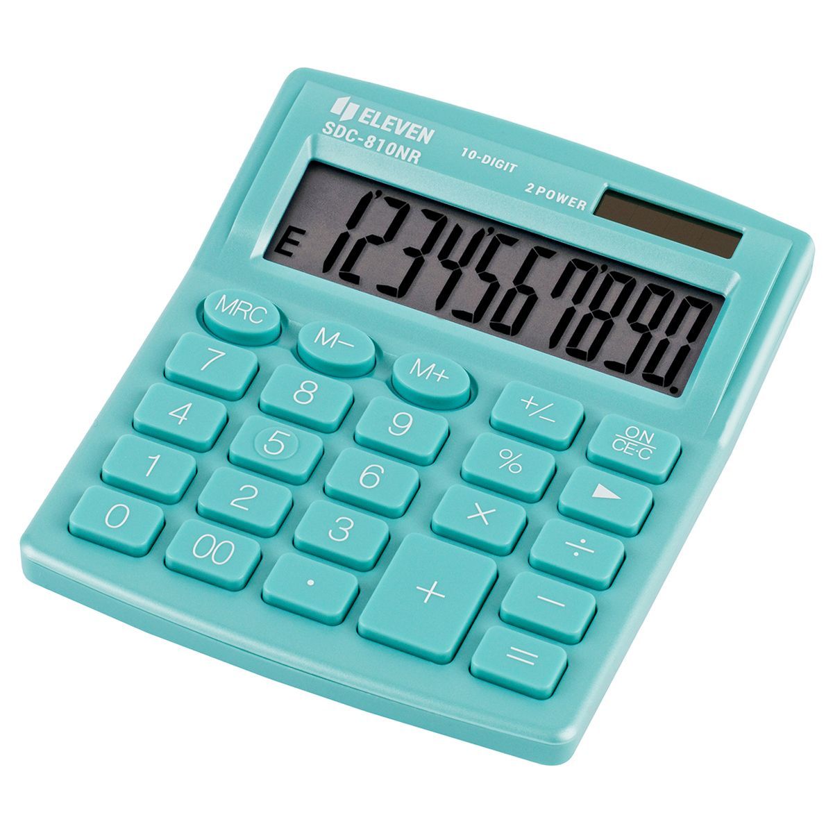 Калькулятор настольный Eleven SDC-810NR-GN, 10 разрядов, двойное питание, 127*105*21мм, бирюзовый